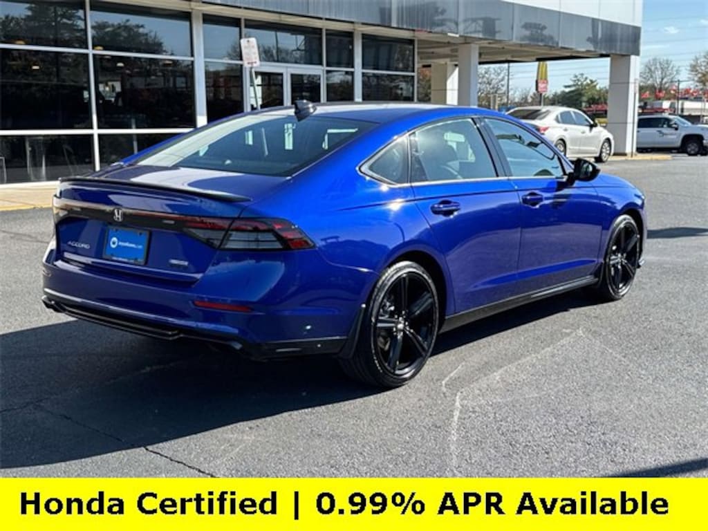 CARFAX One-Owner. Clean CARFAX. Certified. Still Night Pearl 2025 Honda Accord Hybrid Sport-L ***ONE OWNER***, ***LOW MILES***, ***DEALER MAINTAINED***, ***EXCELLENT CONDITION***, ***HONDA CERTIFIED***, ***ADAPTIVE CRUISE CONTROL***, ***ALLOY WHEELS***, ***BACK UP CAMERA***, ***BLIND SIDE MONITORING***, ***FORWARD COLLISION ALERT***, ***LANE DEPARTURE WARNING***, ***HEATED SEATS***, ***LEATHER***, ***POWER MOONROOF***, ***POWER SEATS***, ***REMOTE START***, HondaTrue Certified Certified, 2.0L I4 DOHC 16V, 4-Wheel Disc Brakes, 8 Speakers, ABS brakes, Adaptive Cruise Control: Adaptive Cruise Control (ACC) with Low-Speed Follow, Air Conditioning, Alloy wheels, AM/FM radio, Apple CarPlay/Android Auto, Auto High-beam Headlights, Automatic temperature control, Blind Spot Information (BSI) System warning, Brake assist, Bumpers: body-color, Compass, Delay-off headlights, Driver door bin, Driver vanity mirror, Dual front impact airbags, Dual front side impact airbags, Electronic Stability Control, Emergency communication system: HondaLink, Exterior Parking Camera Rear, Four wheel independent suspension, Front anti-roll bar, Front Bucket Seats, Front Center Armrest, Front dual zone A/C, Front reading lights, Fully automatic headlights, Heated Front Bucket Seats, Heated front seats, Illuminated entry, Knee airbag, Lane departure: Lane Keeping Assist System (LKAS) active, Leather Shift Knob, Leather steering wheel, Leather-Trimmed Seat Trim, Low tire pressure warning, Memory seat, Occupant sensing airbag, Outside temperature display, Overhead airbag, Overhead console, Panic alarm, Passenger door bin, Passenger vanity mirror, Power door mirrors, Power driver seat, Power moonroof, Power passenger seat, Power steering, Power windows, Radio data system, Radio: 180-Watt Audio System, Rear anti-roll bar, Rear reading lights, Rear seat center armrest, Rear side impact airbag, Rear window defroster, Remote keyless entry, Security system, Speed control, Speed-sensing steering, Speed-Sensitive Wipers, Split folding rear seat, Spoiler, Steering wheel mounted audio controls, Telescoping steering wheel, Tilt steering wheel, Traction control, Trip computer, Variably intermittent wipers, Wheels: 19 x 8.5J Matte Berlina Black, 2.0L I4 DOHC 16V.Here is another hand selected pre owned vehicle from Joyce Koons Honda Buick GMC. Odometer is 4015 miles below market average! 46/41 City/Highway MPGHondaTrue Certified Details:* Powertrain Limited Warranty: 84 Month/100,000 Mile (whichever comes first) from original in-service date* Limited Warranty: 24 Month/100,000 Mile (whichever comes first) after new car warranty expires or from certified purchase date* Warranty Deductible: $0* Roadside Assistance* Vehicles purchased within New Vehicle Limited Warranty period: extends New Vehicle Limited Warranty to 5 years*/60,000 miles*. Honda Care Roadside Assistance for 2 year/100,000 miles (whichever occurs first). Up to two complimentary oil changes within the first year of ownership. SiriusXM 90-Day Trial.* 182 Point Inspection* Transferable Warranty* Vehicle History