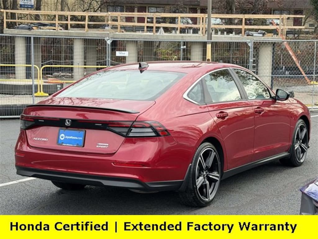CARFAX One-Owner. Certified. Radiant Red Metallic 2025 Honda Accord Hybrid Sport ***ONE OWNER***, ***LOW MILES***, ***DEALER MAINTAINED***, ***EXCELLENT CONDITION***, ***HONDA CERTIFIED***, ***ADAPTIVE CRUISE CONTROL***, ***ALLOY WHEELS***, ***BACK UP CAMERA***, ***BLIND SIDE MONITORING***, ***FORWARD COLLISION ALERT***, ***LANE DEPARTURE WARNING***, ***POWER MOONROOF***, ***POWER SEAT***, ***REMOTE START***, HondaTrue Certified Certified, 2.0L I4 DOHC 16V, 4-Wheel Disc Brakes, 8 Speakers, ABS brakes, Adaptive Cruise Control: Adaptive Cruise Control (ACC) with Low-Speed Follow, Air Conditioning, Alloy wheels, AM/FM radio, Apple CarPlay/Android Auto, Auto High-beam Headlights, Automatic temperature control, Blind Spot Information (BSI) System warning, Brake assist, Bumpers: body-color, Compass, Delay-off headlights, Driver door bin, Driver vanity mirror, Dual front impact airbags, Dual front side impact airbags, Electronic Stability Control, Emergency communication system: HondaLink, Exterior Parking Camera Rear, Fabric Seat Trim, Four wheel independent suspension, Front anti-roll bar, Front Bucket Seats, Front Center Armrest, Front dual zone A/C, Front reading lights, Fully automatic headlights, Heated Front Bucket Seats, Heated front seats, Illuminated entry, Knee airbag, Lane departure: Lane Keeping Assist System (LKAS) active, Leather Shift Knob, Leather steering wheel, Low tire pressure warning, Occupant sensing airbag, Outside temperature display, Overhead airbag, Overhead console, Panic alarm, Passenger door bin, Passenger vanity mirror, Power door mirrors, Power driver seat, Power moonroof, Power steering, Power windows, Radio data system, Radio: 180-Watt Audio System, Rear anti-roll bar, Rear reading lights, Rear seat center armrest, Rear side impact airbag, Rear window defroster, Remote keyless entry, Security system, Speed control, Speed-sensing steering, Speed-Sensitive Wipers, Split folding rear seat, Spoiler, Steering wheel mounted audio controls, Telescoping steering wheel, Tilt steering wheel, Traction control, Trip computer, Variably intermittent wipers, Wheels: 19 x 8.5J Berlina Black, 2.0L I4 DOHC 16V.