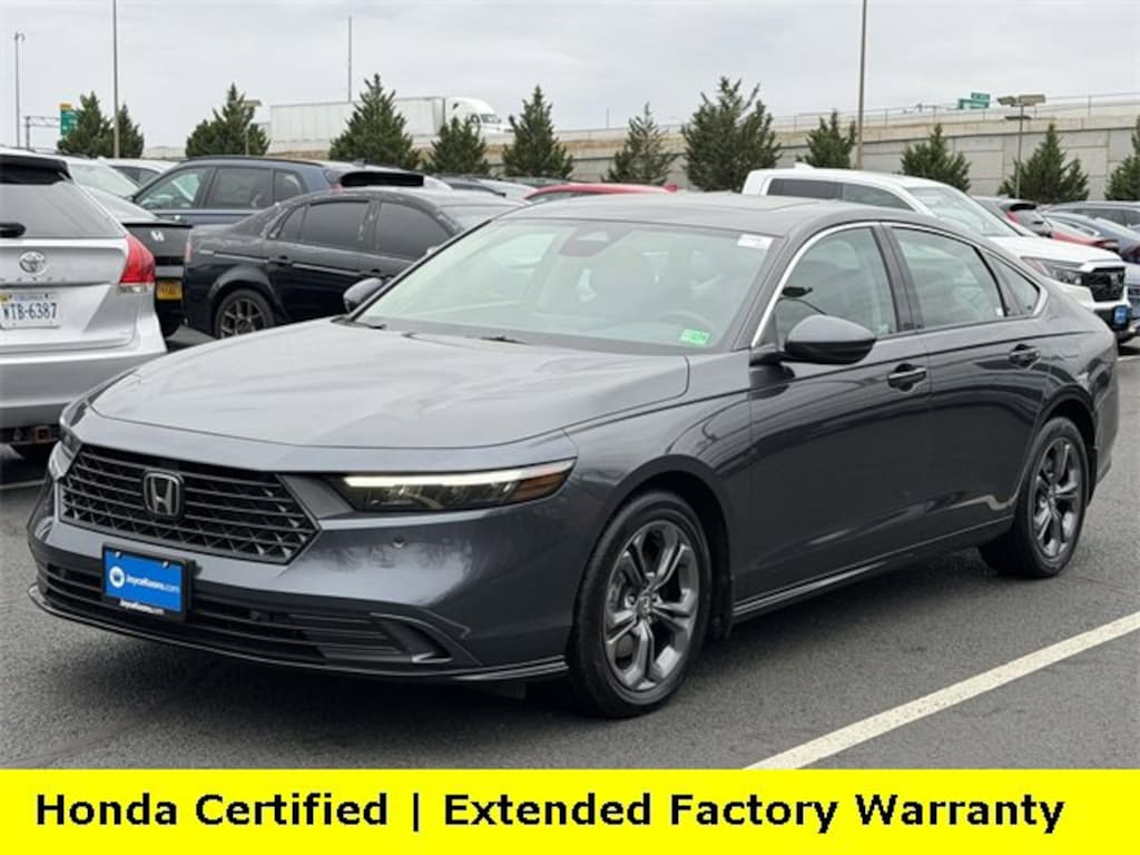 CARFAX One-Owner. Certified. Meteorite Gray Metallic 2025 Honda Accord Hybrid EX-L ***ONE OWNER***, ***LOW MILES***, ***DEALER MAINTAINED***, ***EXCELLENT CONDITION***, ***HONDA CERTIFIED***, ***ADAPTIVE CRUISE CONTROL***, ***ALLOY WHEELS***, ***BACK UP CAMERA***, ***BLIND SIDE MONITORING***, ***FORWARD COLLISION ALERT***, ***LANE DEPARTURE WARNING***, ***HEATED SEATS***, ***LEATHER***, ***POWER MOONROOF***, ***POWER SEATS***, ***REMOTE START***, HondaTrue Certified Certified, 2.0L I4 DOHC 16V, 4-Wheel Disc Brakes, 8 Speakers, ABS brakes, Adaptive Cruise Control: Adaptive Cruise Control (ACC) with Low-Speed Follow, Air Conditioning, Alloy wheels, AM/FM radio, Apple CarPlay/Android Auto, Auto High-beam Headlights, Auto-dimming Rear-View mirror, Automatic temperature control, Blind Spot Information (BSI) System warning, Brake assist, Bumpers: body-color, Compass, Delay-off headlights, Driver door bin, Driver vanity mirror, Dual front impact airbags, Dual front side impact airbags, Electronic Stability Control, Emergency communication system: HondaLink, Exterior Parking Camera Rear, Four wheel independent suspension, Front anti-roll bar, Front Bucket Seats, Front Center Armrest, Front dual zone A/C, Front reading lights, Fully automatic headlights, Heated door mirrors, Heated Front Bucket Seats, Heated front seats, Illuminated entry, Knee airbag, Lane departure: Lane Keeping Assist System (LKAS) active, Leather Shift Knob, Leather steering wheel, Leather-Trimmed Seat Trim, Low tire pressure warning, Memory seat, Occupant sensing airbag, Outside temperature display, Overhead airbag, Overhead console, Panic alarm, Passenger door bin, Passenger vanity mirror, Power door mirrors, Power driver seat, Power moonroof, Power passenger seat, Power steering, Power windows, Radio data system, Radio: 180-Watt Audio System, Rear anti-roll bar, Rear reading lights, Rear seat center armrest, Rear side impact airbag, Rear window defroster, Remote keyless entry, Security system, Speed control, Speed-sensing steering, Speed-Sensitive Wipers, Split folding rear seat, Steering wheel mounted audio controls, Telescoping steering wheel, Tilt steering wheel, Traction control, Trip computer, Turn signal indicator mirrors, Variably intermittent wipers, Wheels: 17 x 7.5J Pewter Gray, 2.0L I4 DOHC 16V.