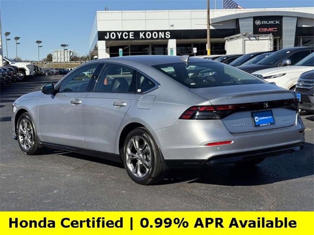 CARFAX One-Owner. Clean CARFAX. Certified. Solar Silver Metallic 2025 Honda Accord Hybrid EX-L ***ONE OWNER***, ***LOW MILES***, ***DEALER MAINTAINED***, ***EXCELLENT CONDITION***, ***HONDA CERTIFIED***, ***ADAPTIVE CRUISE CONTROL***, ***ALLOY WHEELS***, ***BACK UP CAMERA***, ***BLIND SIDE MONITORING***, ***FORWARD COLLISION ALERT***, ***LANE DEPARTURE WARNING***, ***HEATED SEATS***, ***LEATHER***, ***POWER MOONROOF***, ***POWER SEATS***, ***REMOTE START***, HondaTrue Certified Certified, 2.0L I4 DOHC 16V, 4-Wheel Disc Brakes, 8 Speakers, ABS brakes, Adaptive Cruise Control: Adaptive Cruise Control (ACC) with Low-Speed Follow, Air Conditioning, Alloy wheels, AM/FM radio, Apple CarPlay/Android Auto, Auto High-beam Headlights, Auto-dimming Rear-View mirror, Automatic temperature control, Blind Spot Information (BSI) System warning, Brake assist, Bumpers: body-color, Compass, Delay-off headlights, Driver door bin, Driver vanity mirror, Dual front impact airbags, Dual front side impact airbags, Electronic Stability Control, Emergency communication system: HondaLink, Exterior Parking Camera Rear, Four wheel independent suspension, Front anti-roll bar, Front Bucket Seats, Front Center Armrest, Front dual zone A/C, Front reading lights, Fully automatic headlights, Heated door mirrors, Heated Front Bucket Seats, Heated front seats, Illuminated entry, Knee airbag, Lane departure: Lane Keeping Assist System (LKAS) active, Leather Shift Knob, Leather steering wheel, Leather-Trimmed Seat Trim, Low tire pressure warning, Memory seat, Occupant sensing airbag, Outside temperature display, Overhead airbag, Overhead console, Panic alarm, Passenger door bin, Passenger vanity mirror, Power door mirrors, Power driver seat, Power moonroof, Power passenger seat, Power steering, Power windows, Radio data system, Radio: 180-Watt Audio System, Rear anti-roll bar, Rear reading lights, Rear seat center armrest, Rear side impact airbag, Rear window defroster, Remote keyless entry, Security system, Speed control, Speed-sensing steering, Speed-Sensitive Wipers, Split folding rear seat, Steering wheel mounted audio controls, Telescoping steering wheel, Tilt steering wheel, Traction control, Trip computer, Turn signal indicator mirrors, Variably intermittent wipers, Wheels: 17 x 7.5J Pewter Gray, 2.0L I4 DOHC 16V.Here is another hand selected pre owned vehicle from Joyce Koons Honda Buick GMC. Odometer is 742 miles below market average! 51/44 City/Highway MPGHondaTrue Certified Details:* Vehicles purchased within New Vehicle Limited Warranty period: extends New Vehicle Limited Warranty to 5 years*/60,000 miles*. Honda Care Roadside Assistance for 2 year/100,000 miles (whichever occurs first). Up to two complimentary oil changes within the first year of ownership. SiriusXM 90-Day Trial.* Powertrain Limited Warranty: 84 Month/100,000 Mile (whichever comes first) from original in-service date* Limited Warranty: 24 Month/100,000 Mile (whichever comes first) after new car warranty expires or from certified purchase date* Warranty Deductible: $0* 182 Point Inspection* Roadside Assistance* Transferable Warranty* Vehicle History