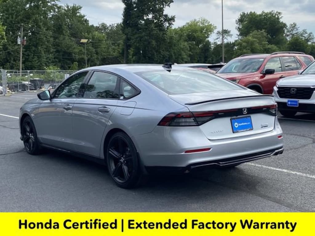 CARFAX One-Owner. Certified. Solar Silver Metallic 2025 Honda Accord Hybrid Sport-L ***ONE OWNER***, ***LOW MILES***, ***DEALER MAINTAINED***, ***EXCELLENT CONDITION***, ***HONDA CERTIFIED***, ***ADAPTIVE CRUISE CONTROL***, ***ALLOY WHEELS***, ***BACK UP CAMERA***, ***BLIND SIDE MONITORING***, ***FORWARD COLLISION ALERT***, ***LANE DEPARTURE WARNING***, ***HEATED SEATS***, ***LEATHER***, ***POWER MOONROOF***, ***POWER SEATS***, ***REMOTE START***, HondaTrue Certified Certified, 2.0L I4 DOHC 16V, 4-Wheel Disc Brakes, 8 Speakers, ABS brakes, Adaptive Cruise Control: Adaptive Cruise Control (ACC) with Low-Speed Follow, Air Conditioning, Alloy wheels, AM/FM radio, Apple CarPlay/Android Auto, Auto High-beam Headlights, Automatic temperature control, Blind Spot Information (BSI) System warning, Brake assist, Bumpers: body-color, Compass, Delay-off headlights, Driver door bin, Driver vanity mirror, Dual front impact airbags, Dual front side impact airbags, Electronic Stability Control, Emergency communication system: HondaLink, Exterior Parking Camera Rear, Four wheel independent suspension, Front anti-roll bar, Front Bucket Seats, Front Center Armrest, Front dual zone A/C, Front reading lights, Fully automatic headlights, Heated Front Bucket Seats, Heated front seats, Illuminated entry, Knee airbag, Lane departure: Lane Keeping Assist System (LKAS) active, Leather Shift Knob, Leather steering wheel, Leather-Trimmed Seat Trim, Low tire pressure warning, Memory seat, Occupant sensing airbag, Outside temperature display, Overhead airbag, Overhead console, Panic alarm, Passenger door bin, Passenger vanity mirror, Power door mirrors, Power driver seat, Power moonroof, Power passenger seat, Power steering, Power windows, Radio data system, Radio: 180-Watt Audio System, Rear anti-roll bar, Rear reading lights, Rear seat center armrest, Rear side impact airbag, Rear window defroster, Remote keyless entry, Security system, Speed control, Speed-sensing steering, Speed-Sensitive Wipers, Split folding rear seat, Spoiler, Steering wheel mounted audio controls, Telescoping steering wheel, Tilt steering wheel, Traction control, Trip computer, Variably intermittent wipers, Wheels: 19 x 8.5J Matte Berlina Black, 2.0L I4 DOHC 16V.