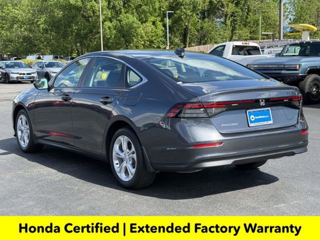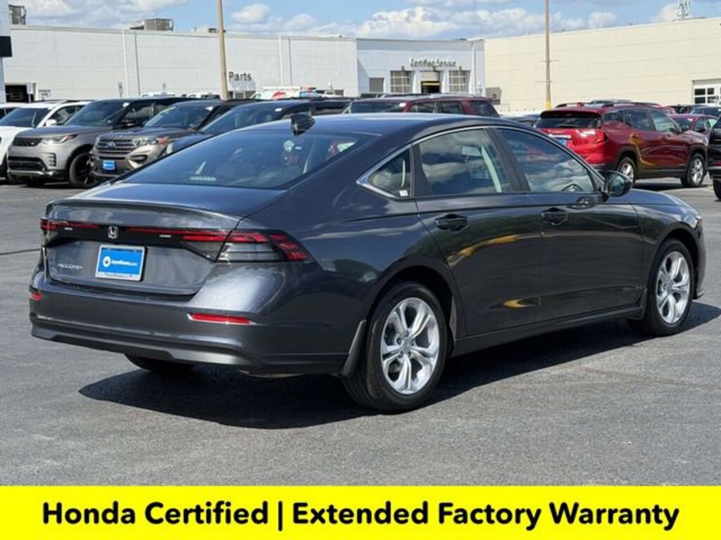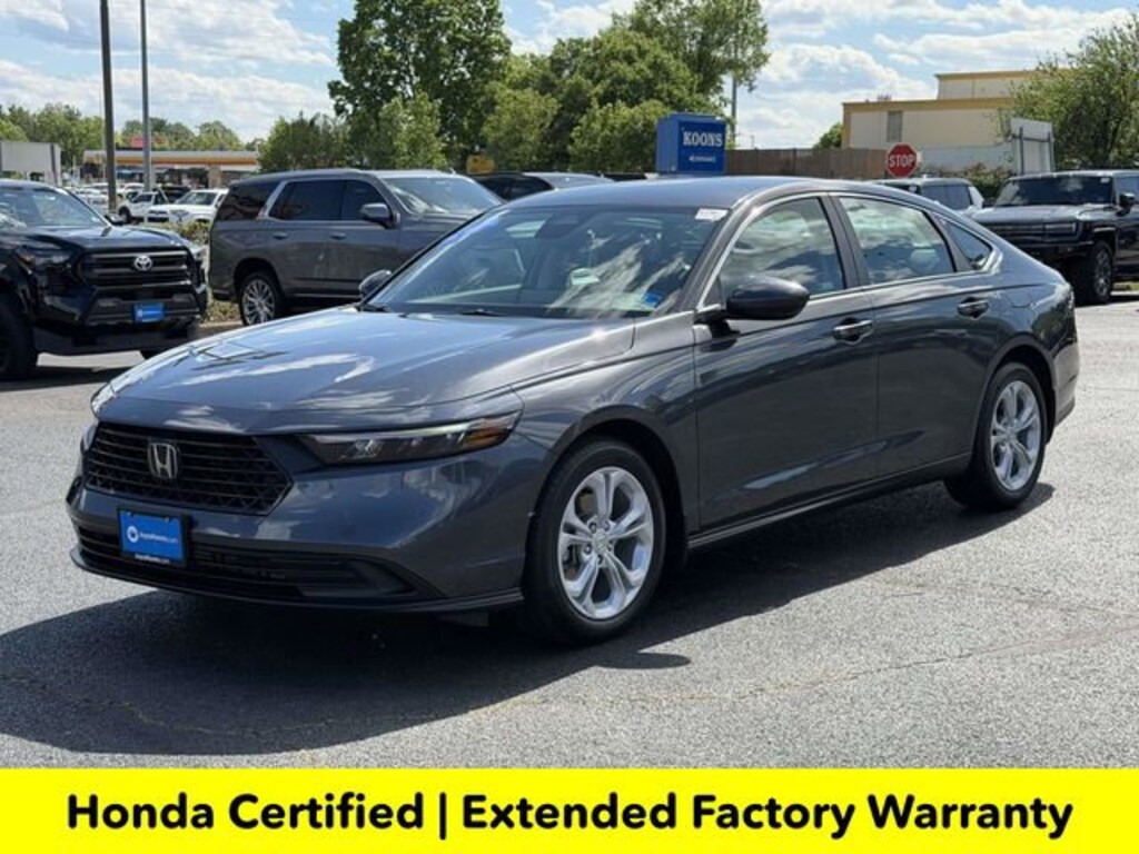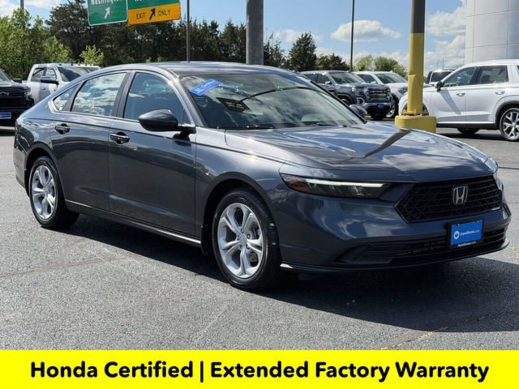 Clean CARFAX. Certified. Meteorite Gray Metallic 2025 Honda Accord LX ***ONE OWNER***, ***LOW MILES***, ***DEALER MAINTAINED***, ***EXCELLENT CONDITION***, ***HONDA CERTIFIED***, ***ADAPTIVE CRUISE CONTROL***, ***ALLOY WHEELS***, ***BACK UP CAMERA***, ***FORWARD COLLISION ALERT***, ***LANE DEPARTURE WARNING***, HondaTrue Certified Certified, Black Cloth, 4 Speakers, 4-Wheel Disc Brakes, ABS brakes, Adaptive Cruise Control: Adaptive Cruise Control (ACC) with Low-Speed Follow, Air Conditioning, Alloy wheels, AM/FM radio, Apple CarPlay/Android Auto, Auto High-beam Headlights, Automatic temperature control, Brake assist, Bumpers: body-color, Compass, Delay-off headlights, Driver door bin, Driver vanity mirror, Dual front impact airbags, Dual front side impact airbags, Electronic Stability Control, Emergency communication system: HondaLink Assist, Exterior Parking Camera Rear, Fabric Seat Trim, Four wheel independent suspension, Front anti-roll bar, Front Bucket Seats, Front Center Armrest, Front reading lights, Fully automatic headlights, Illuminated entry, Knee airbag, Lane departure: Lane Keeping Assist System (LKAS) active, Low tire pressure warning, Occupant sensing airbag, Outside temperature display, Overhead airbag, Overhead console, Panic alarm, Passenger door bin, Passenger vanity mirror, Power door mirrors, Power steering, Power windows, Radio data system, Radio: 160-Watt Audio System, Rear anti-roll bar, Rear reading lights, Rear seat center armrest, Rear side impact airbag, Rear window defroster, Remote keyless entry, Security system, Speed control, Speed-sensing steering, Speed-Sensitive Wipers, Steering wheel mounted audio controls, Tachometer, Telescoping steering wheel, Tilt steering wheel, Traction control, Trip computer, Variably intermittent wipers, Wheels: 17 x 7.5J Blade Silver, Black Cloth.Here is another hand selected pre owned vehicle from Joyce Koons Honda Buick GMC. Recent Arrival! Odometer is 640 miles below market average! 29/37 City/Highway MPGHondaTrue Certified Details:* 182 Point Inspection* Vehicles purchased within New Vehicle Limited Warranty period: extends New Vehicle Limited Warranty to 5 years*/60,000 miles*. Honda Care Roadside Assistance for 2 year/100,000 miles (whichever occurs first). Up to two complimentary oil changes within the first year of ownership. SiriusXM 90-Day Trial.* Warranty Deductible: $0* Vehicle History* Roadside Assistance* Transferable Warranty* Limited Warranty: 24 Month/100,000 Mile (whichever comes first) after new car warranty expires or from certified purchase date* Powertrain Limited Warranty: 84 Month/100,000 Mile (whichever comes first) from original in-service date
