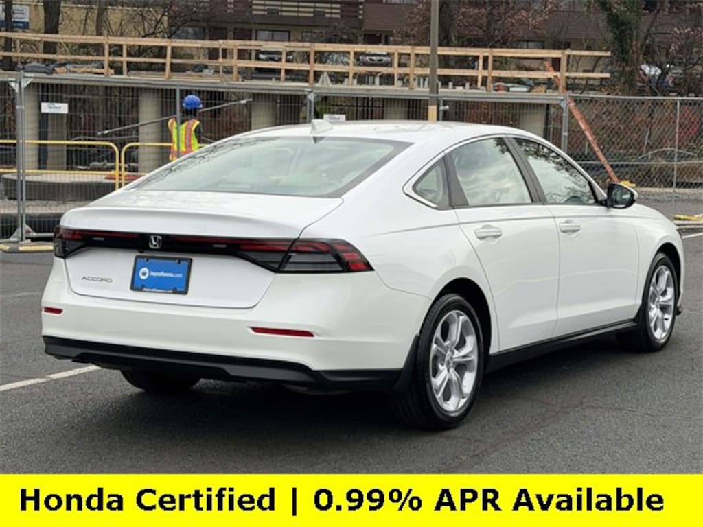 CARFAX One-Owner. Clean CARFAX. Certified. Platinum White Pearl 2025 Honda Accord LX ***ONE OWNER***, ***LOW MILES***, ***DEALER MAINTAINED***, ***EXCELLENT CONDITION***, ***HONDA CERTIFIED***, ***ADAPTIVE CRUISE CONTROL***, ***ALLOY WHEELS***, ***BACK UP CAMERA***, ***FORWARD COLLISION ALERT***, ***LANE DEPARTURE WARNING***, HondaTrue Certified Certified, Gray Cloth, 4 Speakers, 4-Wheel Disc Brakes, ABS brakes, Adaptive Cruise Control: Adaptive Cruise Control (ACC) with Low-Speed Follow, Air Conditioning, Alloy wheels, AM/FM radio, Apple CarPlay/Android Auto, Auto High-beam Headlights, Automatic temperature control, Brake assist, Bumpers: body-color, Compass, Delay-off headlights, Driver door bin, Driver vanity mirror, Dual front impact airbags, Dual front side impact airbags, Electronic Stability Control, Emergency communication system: HondaLink Assist, Exterior Parking Camera Rear, Fabric Seat Trim, Four wheel independent suspension, Front anti-roll bar, Front Bucket Seats, Front Center Armrest, Front reading lights, Fully automatic headlights, Illuminated entry, Knee airbag, Lane departure: Lane Keeping Assist System (LKAS) active, Low tire pressure warning, Occupant sensing airbag, Outside temperature display, Overhead airbag, Overhead console, Panic alarm, Passenger door bin, Passenger vanity mirror, Power door mirrors, Power steering, Power windows, Radio data system, Radio: 160-Watt Audio System, Rear anti-roll bar, Rear reading lights, Rear seat center armrest, Rear side impact airbag, Rear window defroster, Remote keyless entry, Security system, Speed control, Speed-sensing steering, Speed-Sensitive Wipers, Steering wheel mounted audio controls, Tachometer, Telescoping steering wheel, Tilt steering wheel, Traction control, Trip computer, Variably intermittent wipers, Wheels: 17 x 7.5J Blade Silver, Gray Cloth.Here is another hand selected pre owned vehicle from Joyce Koons Honda Buick GMC. 29/37 City/Highway MPGHondaTrue Certified Details:* Warranty Deductible: $0* Transferable Warranty* Vehicles purchased within New Vehicle Limited Warranty period: extends New Vehicle Limited Warranty to 5 years*/60,000 miles*. Honda Care Roadside Assistance for 2 year/100,000 miles (whichever occurs first). Up to two complimentary oil changes within the first year of ownership. SiriusXM 90-Day Trial.* 182 Point Inspection* Vehicle History* Roadside Assistance* Powertrain Limited Warranty: 84 Month/100,000 Mile (whichever comes first) from original in-service date* Limited Warranty: 24 Month/100,000 Mile (whichever comes first) after new car warranty expires or from certified purchase date