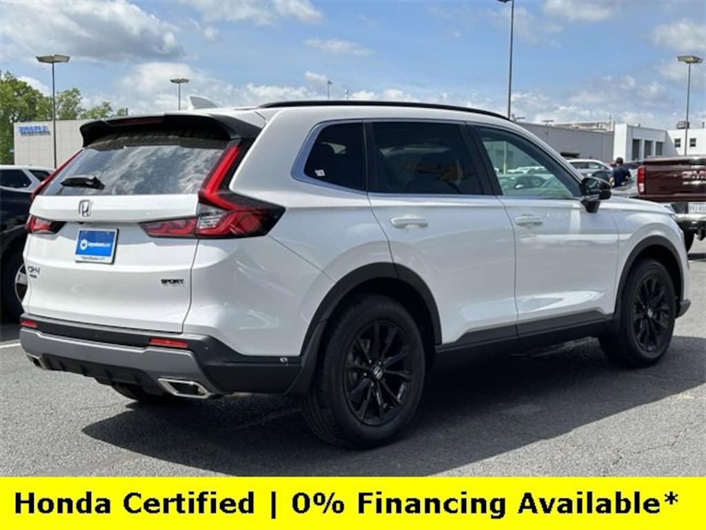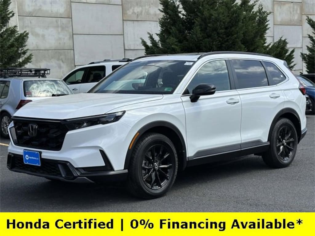 CARFAX One-Owner. Clean CARFAX. Certified. Platinum White Pearl 2025 Honda CR-V Hybrid Sport ***ONE OWNER***, ***LOW MILES***, ***DEALER MAINTAINED***, ***EXCELLENT CONDITION***, ***HONDA CERTIFIED***, ***ALL WHEEL DRIVE***, ***ADAPTIVE CRUISE CONTROL***, ***ALLOY WHEELS***, ***BACK UP CAMERA***, ***BLIND SIDE MONITORING***, ***FORWARD COLLISION ALERT***, ***LANE DEPARTURE WARNING***, ***HEATED SEATS***, ***POWER MOONROOF***, ***POWER SEAT***, ***REMOTE START***, HondaTrue Certified Certified, 2.0L I4 DOHC 16V, 4-Wheel Disc Brakes, 6 Speakers, ABS brakes, Adaptive Cruise Control: Adaptive Cruise Control (ACC) with Low-Speed Follow, Air Conditioning, Alloy wheels, Apple CarPlay/Android Auto, Auto High-beam Headlights, Automatic temperature control, Blind Spot Information (BSI) System warning, Brake assist, Bumpers: body-color, Cloth Seat Trim, Compass, Delay-off headlights, Driver door bin, Driver vanity mirror, Dual front impact airbags, Dual front side impact airbags, Electronic Stability Control, Exterior Parking Camera Rear, Four wheel independent suspension, Front anti-roll bar, Front Bucket Seats, Front Center Armrest, Front dual zone A/C, Front reading lights, Fully automatic headlights, Heated door mirrors, Heated Front Bucket Seats, Heated front seats, Illuminated entry, Knee airbag, Leather Shift Knob, Leather steering wheel, Low tire pressure warning, Occupant sensing airbag, Outside temperature display, Overhead airbag, Overhead console, Panic alarm, Passenger door bin, Passenger vanity mirror, Power door mirrors, Power driver seat, Power moonroof, Power steering, Power windows, Radio data system, Radio: 240-Watt AM/FM Audio System, Rear anti-roll bar, Rear reading lights, Rear seat center armrest, Rear side impact airbag, Rear window defroster, Rear window wiper, Remote keyless entry, Security system, Speed control, Speed-sensing steering, Speed-Sensitive Wipers, Split folding rear seat, Spoiler, Steering wheel mounted audio controls, Telescoping steering wheel, Tilt steering wheel, Traction control, Trip computer, Turn signal indicator mirrors, Variably intermittent wipers, Wheels: 18 Berlina Black Alloy, 2.0L I4 DOHC 16V.
