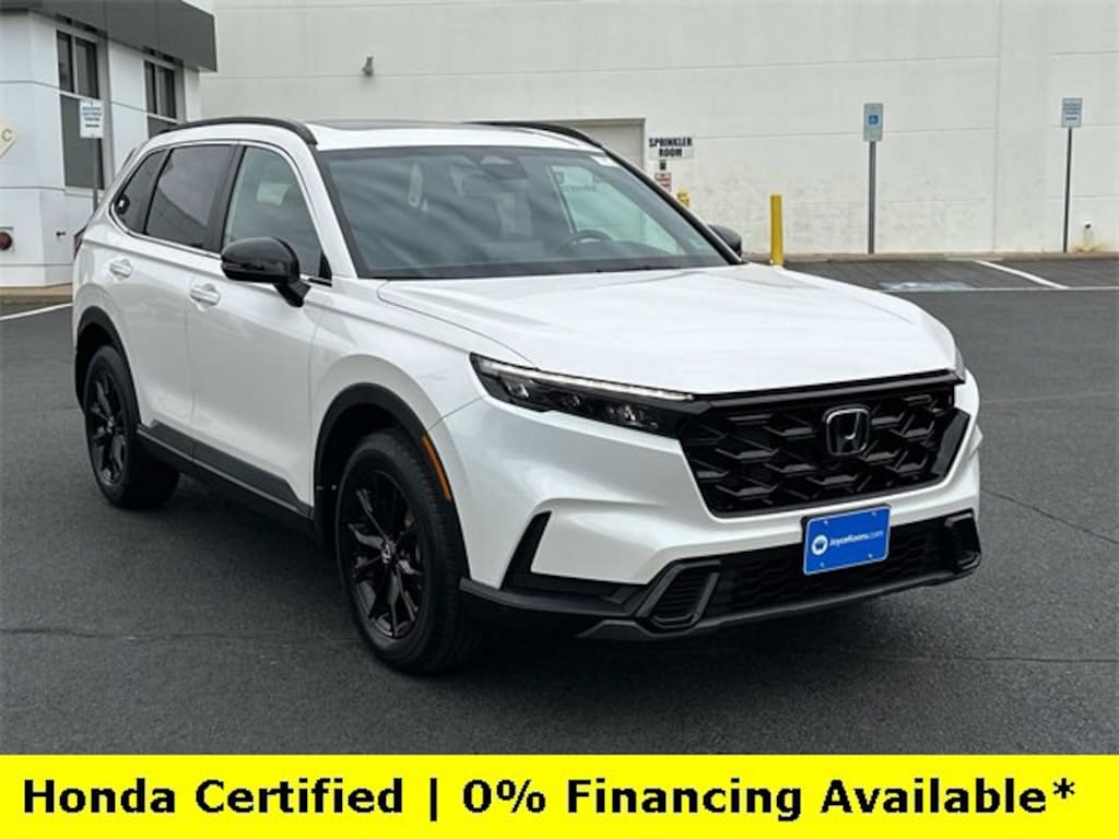 CARFAX One-Owner. Clean CARFAX. Certified. Platinum White Pearl 2025 Honda CR-V Hybrid Sport ***ONE OWNER***, ***LOW MILES***, ***DEALER MAINTAINED***, ***EXCELLENT CONDITION***, ***HONDA CERTIFIED***, ***ALL WHEEL DRIVE***, ***ADAPTIVE CRUISE CONTROL***, ***ALLOY WHEELS***, ***BACK UP CAMERA***, ***BLIND SIDE MONITORING***, ***FORWARD COLLISION ALERT***, ***LANE DEPARTURE WARNING***, ***HEATED SEATS***, ***POWER MOONROOF***, ***POWER SEAT***, ***REMOTE START***, HondaTrue Certified Certified, 2.0L I4 DOHC 16V, 4-Wheel Disc Brakes, 6 Speakers, ABS brakes, Adaptive Cruise Control: Adaptive Cruise Control (ACC) with Low-Speed Follow, Air Conditioning, Alloy wheels, Apple CarPlay/Android Auto, Auto High-beam Headlights, Automatic temperature control, Blind Spot Information (BSI) System warning, Brake assist, Bumpers: body-color, Cloth Seat Trim, Compass, Delay-off headlights, Driver door bin, Driver vanity mirror, Dual front impact airbags, Dual front side impact airbags, Electronic Stability Control, Exterior Parking Camera Rear, Four wheel independent suspension, Front anti-roll bar, Front Bucket Seats, Front Center Armrest, Front dual zone A/C, Front reading lights, Fully automatic headlights, Heated door mirrors, Heated Front Bucket Seats, Heated front seats, Illuminated entry, Knee airbag, Leather Shift Knob, Leather steering wheel, Low tire pressure warning, Occupant sensing airbag, Outside temperature display, Overhead airbag, Overhead console, Panic alarm, Passenger door bin, Passenger vanity mirror, Power door mirrors, Power driver seat, Power moonroof, Power steering, Power windows, Radio data system, Radio: 240-Watt AM/FM Audio System, Rear anti-roll bar, Rear reading lights, Rear seat center armrest, Rear side impact airbag, Rear window defroster, Rear window wiper, Remote keyless entry, Security system, Speed control, Speed-sensing steering, Speed-Sensitive Wipers, Split folding rear seat, Spoiler, Steering wheel mounted audio controls, Telescoping steering wheel, Tilt steering wheel, Traction control, Trip computer, Turn signal indicator mirrors, Variably intermittent wipers, Wheels: 18 Berlina Black Alloy, 2.0L I4 DOHC 16V.