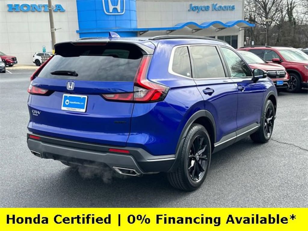 CARFAX One-Owner. Clean CARFAX. Certified. Still Night Pearl 2025 Honda CR-V Hybrid Sport ***ONE OWNER***, ***LOW MILES***, ***DEALER MAINTAINED***, ***EXCELLENT CONDITION***, ***HONDA CERTIFIED***, ***ALL WHEEL DRIVE***, ***ADAPTIVE CRUISE CONTROL***, ***ALLOY WHEELS***, ***BACK UP CAMERA***, ***BLIND SIDE MONITORING***, ***FORWARD COLLISION ALERT***, ***LANE DEPARTURE WARNING***, ***HEATED SEATS***, ***POWER MOONROOF***, ***POWER SEAT***, ***REMOTE START***, HondaTrue Certified Certified, 2.0L I4 DOHC 16V, 4-Wheel Disc Brakes, 6 Speakers, ABS brakes, Adaptive Cruise Control: Adaptive Cruise Control (ACC) with Low-Speed Follow, Air Conditioning, Alloy wheels, Apple CarPlay/Android Auto, Auto High-beam Headlights, Automatic temperature control, Blind Spot Information (BSI) System warning, Brake assist, Bumpers: body-color, Cloth Seat Trim, Compass, Delay-off headlights, Driver door bin, Driver vanity mirror, Dual front impact airbags, Dual front side impact airbags, Electronic Stability Control, Exterior Parking Camera Rear, Four wheel independent suspension, Front anti-roll bar, Front Bucket Seats, Front Center Armrest, Front dual zone A/C, Front reading lights, Fully automatic headlights, Heated door mirrors, Heated Front Bucket Seats, Heated front seats, Illuminated entry, Knee airbag, Leather Shift Knob, Leather steering wheel, Low tire pressure warning, Occupant sensing airbag, Outside temperature display, Overhead airbag, Overhead console, Panic alarm, Passenger door bin, Passenger vanity mirror, Power door mirrors, Power driver seat, Power moonroof, Power steering, Power windows, Radio data system, Radio: 240-Watt AM/FM Audio System, Rear anti-roll bar, Rear reading lights, Rear seat center armrest, Rear side impact airbag, Rear window defroster, Rear window wiper, Remote keyless entry, Security system, Speed control, Speed-sensing steering, Speed-Sensitive Wipers, Split folding rear seat, Spoiler, Steering wheel mounted audio controls, Telescoping steering wheel, Tilt steering wheel, Traction control, Trip computer, Turn signal indicator mirrors, Variably intermittent wipers, Wheels: 18 Berlina Black Alloy, 2.0L I4 DOHC 16V.