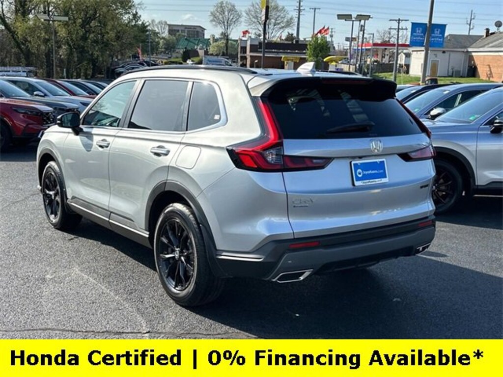 CARFAX One-Owner. Clean CARFAX. Certified. Solar Silver Metallic 2025 Honda CR-V Hybrid Sport ***ONE OWNER***, ***LOW MILES***, ***DEALER MAINTAINED***, ***EXCELLENT CONDITION***, ***HONDA CERTIFIED***, ***ALL WHEEL DRIVE***, ***ADAPTIVE CRUISE CONTROL***, ***ALLOY WHEELS***, ***BACK UP CAMERA***, ***BLIND SIDE MONITORING***, ***FORWARD COLLISION ALERT***, ***LANE DEPARTURE WARNING***, ***HEATED SEATS***, ***POWER MOONROOF***, ***POWER SEAT***, ***REMOTE START***, HondaTrue Certified Certified, 2.0L I4 DOHC 16V, 4-Wheel Disc Brakes, 6 Speakers, ABS brakes, Adaptive Cruise Control: Adaptive Cruise Control (ACC) with Low-Speed Follow, Air Conditioning, Alloy wheels, Apple CarPlay/Android Auto, Auto High-beam Headlights, Automatic temperature control, Blind Spot Information (BSI) System warning, Brake assist, Bumpers: body-color, Cloth Seat Trim, Compass, Delay-off headlights, Driver door bin, Driver vanity mirror, Dual front impact airbags, Dual front side impact airbags, Electronic Stability Control, Exterior Parking Camera Rear, Four wheel independent suspension, Front anti-roll bar, Front Bucket Seats, Front Center Armrest, Front dual zone A/C, Front reading lights, Fully automatic headlights, Heated door mirrors, Heated Front Bucket Seats, Heated front seats, Illuminated entry, Knee airbag, Leather Shift Knob, Leather steering wheel, Low tire pressure warning, Occupant sensing airbag, Outside temperature display, Overhead airbag, Overhead console, Panic alarm, Passenger door bin, Passenger vanity mirror, Power door mirrors, Power driver seat, Power moonroof, Power steering, Power windows, Radio data system, Radio: 240-Watt AM/FM Audio System, Rear anti-roll bar, Rear reading lights, Rear seat center armrest, Rear side impact airbag, Rear window defroster, Rear window wiper, Remote keyless entry, Security system, Speed control, Speed-sensing steering, Speed-Sensitive Wipers, Split folding rear seat, Spoiler, Steering wheel mounted audio controls, Telescoping steering wheel, Tilt steering wheel, Traction control, Trip computer, Turn signal indicator mirrors, Variably intermittent wipers, Wheels: 18 Berlina Black Alloy, 2.0L I4 DOHC 16V.