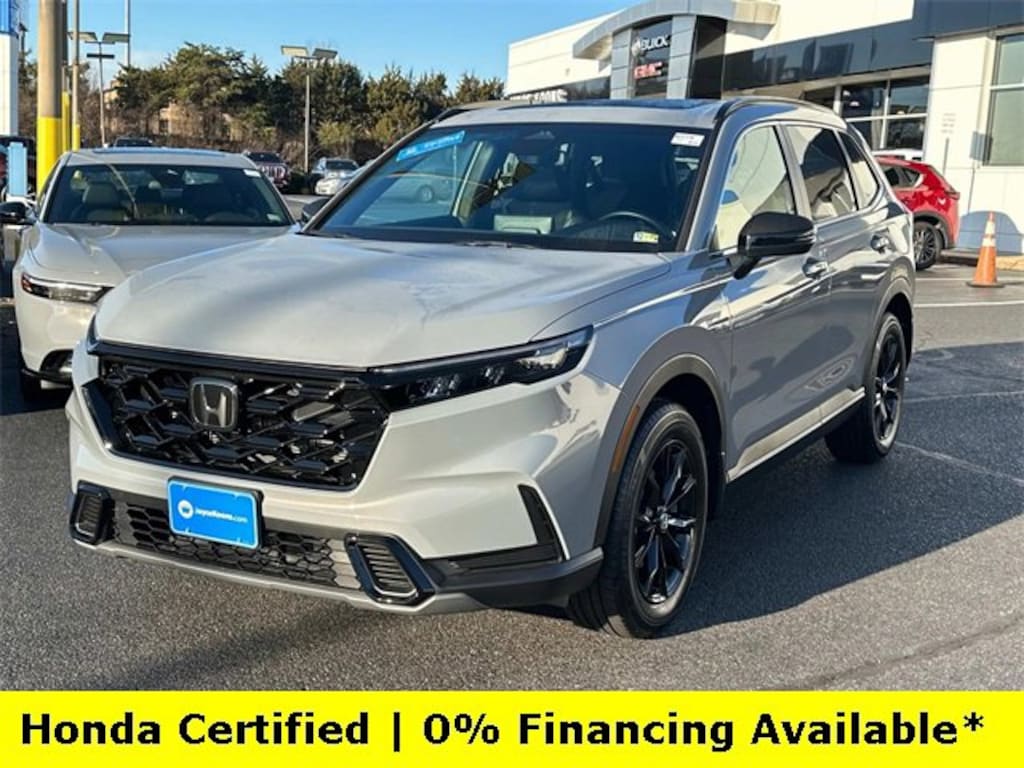 CARFAX One-Owner. Clean CARFAX. Certified. Urban Gray Pearl 2025 Honda CR-V Hybrid Sport ***ONE OWNER***, ***LOW MILES***, ***DEALER MAINTAINED***, ***EXCELLENT CONDITION***, ***HONDA CERTIFIED***, ***ALL WHEEL DRIVE***, ***ADAPTIVE CRUISE CONTROL***, ***ALLOY WHEELS***, ***BACK UP CAMERA***, ***BLIND SIDE MONITORING***, ***FORWARD COLLISION ALERT***, ***LANE DEPARTURE WARNING***, ***HEATED SEATS***, ***POWER MOONROOF***, ***POWER SEAT***, ***REMOTE START***, HondaTrue Certified Certified, 2.0L I4 DOHC 16V, 4-Wheel Disc Brakes, 6 Speakers, ABS brakes, Adaptive Cruise Control: Adaptive Cruise Control (ACC) with Low-Speed Follow, Air Conditioning, Alloy wheels, Apple CarPlay/Android Auto, Auto High-beam Headlights, Automatic temperature control, Blind Spot Information (BSI) System warning, Brake assist, Bumpers: body-color, Cloth Seat Trim, Compass, Delay-off headlights, Driver door bin, Driver vanity mirror, Dual front impact airbags, Dual front side impact airbags, Electronic Stability Control, Exterior Parking Camera Rear, Four wheel independent suspension, Front anti-roll bar, Front Bucket Seats, Front Center Armrest, Front dual zone A/C, Front reading lights, Fully automatic headlights, Heated door mirrors, Heated Front Bucket Seats, Heated front seats, Illuminated entry, Knee airbag, Leather Shift Knob, Leather steering wheel, Low tire pressure warning, Occupant sensing airbag, Outside temperature display, Overhead airbag, Overhead console, Panic alarm, Passenger door bin, Passenger vanity mirror, Power door mirrors, Power driver seat, Power moonroof, Power steering, Power windows, Radio data system, Radio: 240-Watt AM/FM Audio System, Rear anti-roll bar, Rear reading lights, Rear seat center armrest, Rear side impact airbag, Rear window defroster, Rear window wiper, Remote keyless entry, Security system, Speed control, Speed-sensing steering, Speed-Sensitive Wipers, Split folding rear seat, Spoiler, Steering wheel mounted audio controls, Telescoping steering wheel, Tilt steering wheel, Traction control, Trip computer, Turn signal indicator mirrors, Variably intermittent wipers, Wheels: 18 Berlina Black Alloy, 2.0L I4 DOHC 16V.