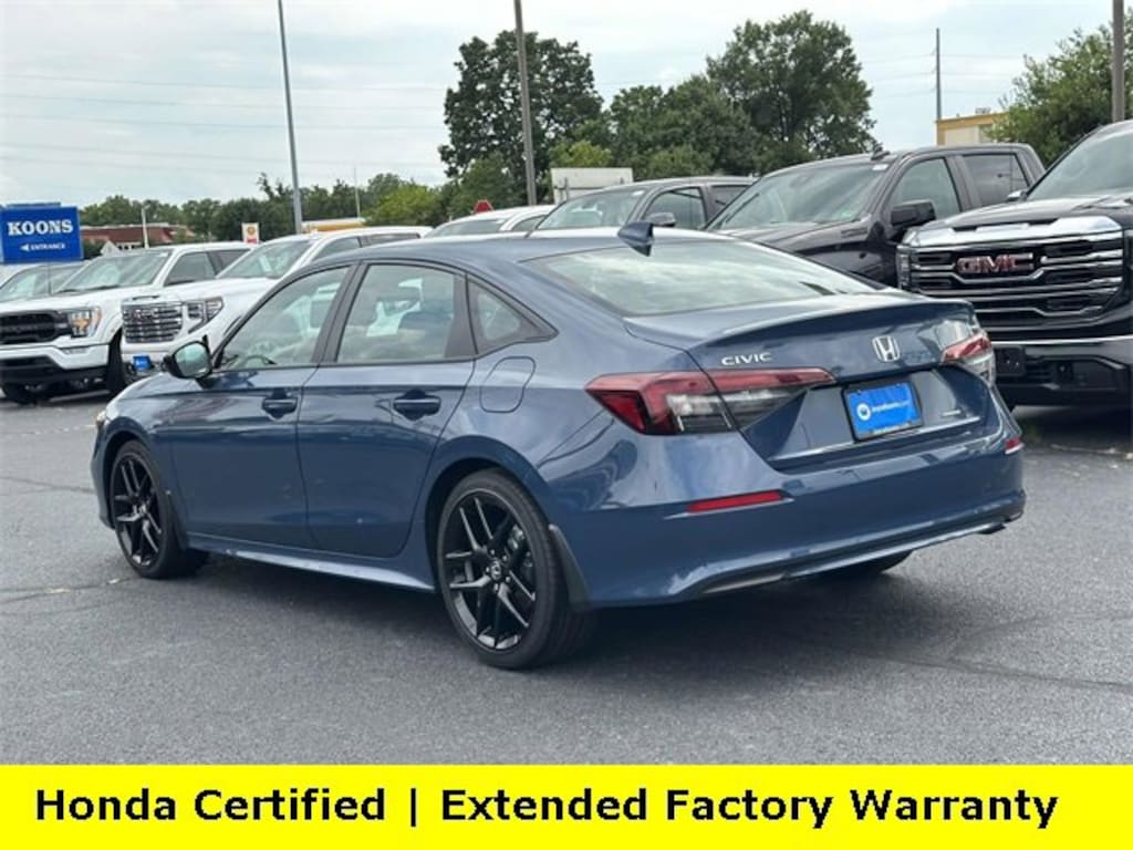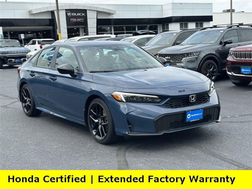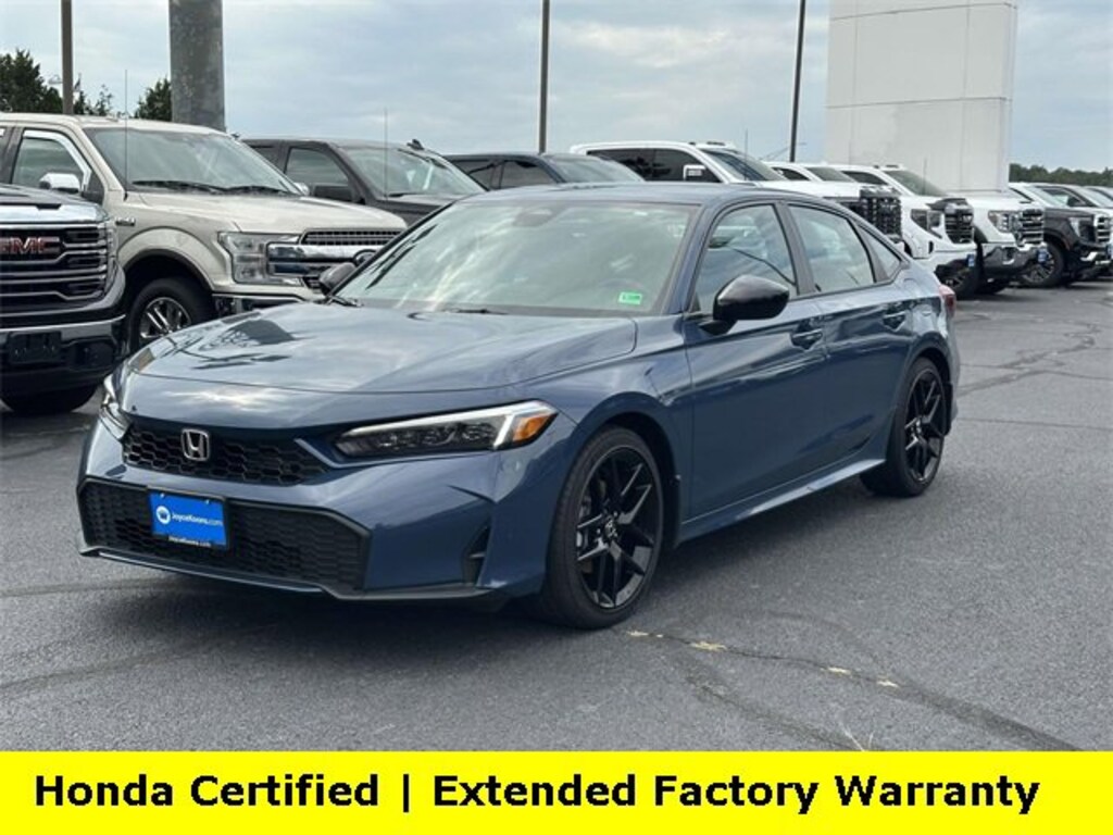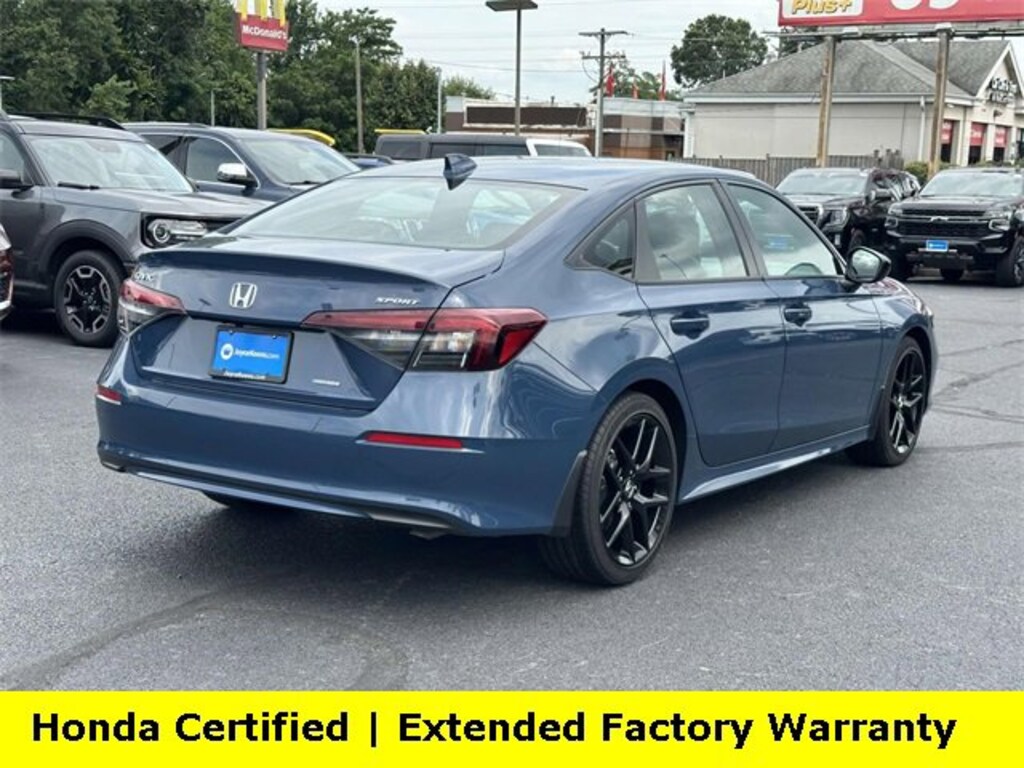 CARFAX One-Owner. Clean CARFAX. Certified. Blue Lagoon Pearl 2025 Honda Civic Hybrid Sport ***ONE OWNER***, ***LOW MILES***, ***DEALER MAINTAINED***, ***EXCELLENT CONDITION***, ***HONDA CERTIFIED***, ***ADAPTIVE CRUISE CONTROL***, ***ALLOY WHEELS***, ***BACK UP CAMERA***, ***BLIND SIDE MONITORING***, ***FORWARD COLLISION ALERT***, ***LANE DEPARTURE WARNING***, ***HEATED SEATS***, ***POWER MOONROOF***, ***REMOTE START***, HondaTrue Certified Certified, 2.0L 16V DOHC, 4-Wheel Disc Brakes, 8 Speakers, ABS brakes, Adaptive Cruise Control: Adaptive Cruise Control (ACC) with Low-Speed Follow, Air Conditioning, Alloy wheels, AM/FM radio, Apple CarPlay/Android Auto, Auto High-beam Headlights, Automatic temperature control, Blind Spot Information (BSI) System warning, Brake assist, Bumpers: body-color, Cloth/Leatherette Seat Trim, Delay-off headlights, Driver door bin, Driver vanity mirror, Dual front impact airbags, Dual front side impact airbags, Electronic Stability Control, Emergency communication system: HondaLink, Exterior Parking Camera Rear, Four wheel independent suspension, Front anti-roll bar, Front Bucket Seats, Front Center Armrest, Front dual zone A/C, Front reading lights, Fully automatic headlights, Heated door mirrors, Heated Front Bucket Seats, Heated front seats, Illuminated entry, Knee airbag, Leather Shift Knob, Leather steering wheel, Low tire pressure warning, Occupant sensing airbag, Outside temperature display, Overhead airbag, Panic alarm, Passenger door bin, Passenger vanity mirror, Power door mirrors, Power moonroof, Power steering, Power windows, Radio data system, Radio: 180-Watt Audio System, Rear anti-roll bar, Rear seat center armrest, Rear side impact airbag, Rear window defroster, Remote keyless entry, Security system, Speed control, Speed-sensing steering, Split folding rear seat, Steering wheel mounted audio controls, Tachometer, Telescoping steering wheel, Tilt steering wheel, Traction control, Trip computer, Variably intermittent wipers, Wheels: 18 Gloss Black Alloy, 2.0L 16V DOHC.