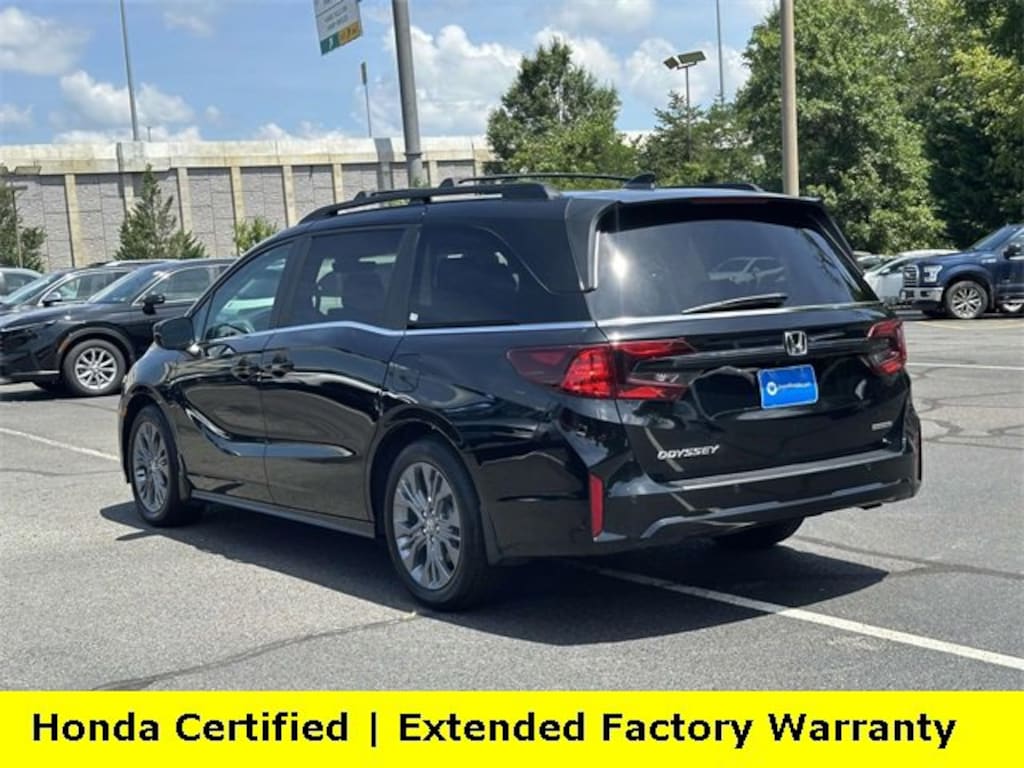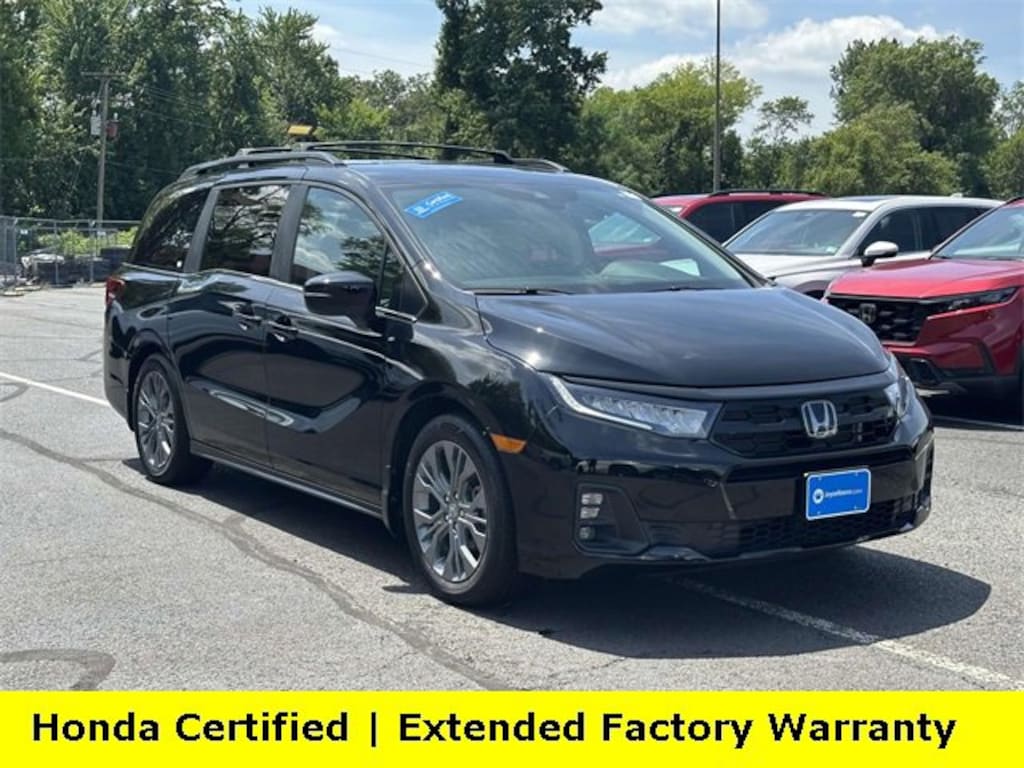 CARFAX One-Owner. Clean CARFAX. Certified. Crystal Black Pearl 2025 Honda Odyssey Touring ***ONE OWNER***, ***DEALER MAINTAINED***, ***EXCELLENT CONDITION***, ***LOADED***, ***3RD ROW SEATS***, ***ADAPTIVE CRUISE CONTROL***, ***ALLOY WHEELS***, ***BACK UP CAMERA***, ***DUAL POWER SLIDING DOORS***, ***BLIND SIDE MONITORING***, ***FORWARD COLLISION ALERT***, ***LANE DEPARTURE WARNING***, ***HEATED SEATS***, ***LEATHER***, ***SIRIUS XM RADIO***, ***NAVIGATION***, ***POWER LIFTGATE***, ***POWER MOONROOF***, ***POWER SEATS***, ***REAR ENTERTAINMENT***, ***REMOTE START***, HondaTrue Certified Certified, 19 Silver Alloy Wheels, 3rd row seats: split-bench, 4-Wheel Disc Brakes, 7 Speakers, ABS brakes, Adaptive Cruise Control: Adaptive Cruise Control (ACC) with Low-Speed Follow, Air Conditioning, Alloy wheels, AM/FM radio: SiriusXM, Anti-whiplash front head restraints, Apple CarPlay/Android Auto, Auto High-beam Headlights, Auto-dimming Rear-View mirror, Automatic temperature control, Blind Spot Information (BSI) System warning, Brake assist, Bumpers: body-color, Compass, Delay-off headlights, Driver door bin, Driver vanity mirror, Driver's Seat Mounted Armrest, Dual front impact airbags, Dual front side impact airbags, Electronic Stability Control, Emergency communication system: HondaLink, Exterior Parking Camera Rear, Four wheel independent suspension, Front anti-roll bar, Front Bucket Seats, Front dual zone A/C, Front fog lights, Front reading lights, Fully automatic headlights, Garage door transmitter: HomeLink, Heated door mirrors, Heated Front Bucket Seats, Heated front seats, Illuminated entry, Knee airbag, Lane departure: Lane Keeping Assist System (LKAS) active, Leather steering wheel, Leather Trimmed Seats w/Piping, Low tire pressure warning, Memory seat, Navigation system: Honda Satellite-Linked Navigation System, Occupant sensing airbag, Outside temperature display, Overhead airbag, Overhead console, Panic alarm, Passenger door bin, Passenger seat mounted armrest, Passenger vanity mirror, Power door mirrors, Power driver seat, Power Liftgate, Power moonroof, Power passenger seat, Power steering, Power windows, Radio data system, Radio: 160-Watt AM/FM/HD/SiriusXM Audio System, Rear air conditioning, Rear anti-roll bar, Rear audio controls, Rear reading lights, Rear seat center armrest, Rear window defroster, Rear window wiper, Reclining 3rd row seat, Remote keyless entry, Security system, Speed control, Speed-sensing steering, Speed-Sensitive Wipers, Split folding rear seat, Spoiler, Steering wheel mounted audio controls, Tachometer, Telescoping steering wheel, Tilt steering wheel, Traction control, Trip computer, Turn signal indicator mirrors, Variably intermittent wipers.