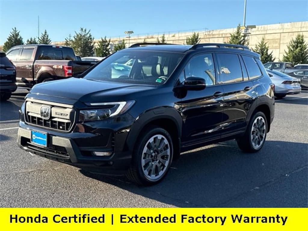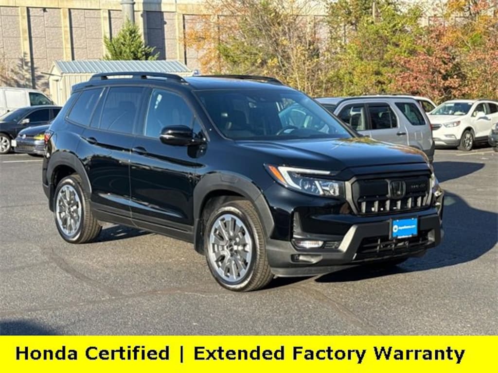 Clean CARFAX. Certified. Crystal Black Pearl 2025 Honda Passport Black Edition ***ONE OWNER***, ***LOW MILES***, ***DEALER MAINTAINED***, ***EXCELLENT CONDITION***, ***LOADED***, ***HONDA CERTIFIED***, ***ALL WHEEL DRIVE***, ***ADAPTIVE CRUISE CONTROL***, ***ALLOY WHEELS***, ***BACK UP CAMERA***, ***BLIND SIDE MONITORING***, ***FORWARD COLLISION ALERT***, ***LANE DEPARTURE WARNING***, ***HEATED SEATS***, ***LEATHER***, ***SIRIUS XM RADIO***, ***POWER LIFTGATE***, ***POWER MOONROOF***, ***POWER SEATS***, ***REMOTE START***, HondaTrue Certified Certified, 10 Speakers, 4-Wheel Disc Brakes, A/V remote: CabinControl, ABS brakes, Air Conditioning, Alloy wheels, AM/FM radio: SiriusXM, Apple CarPlay/Android Auto, Auto High-beam Headlights, Auto-dimming door mirrors, Auto-dimming Rear-View mirror, Automatic temperature control, Blind Spot Information (BSI) System warning, Brake assist, Bumpers: body-color, Compass, Delay-off headlights, Driver door bin, Driver vanity mirror, Driver's Seat Mounted Armrest, Dual front impact airbags, Dual front side impact airbags, Electronic Stability Control, Emergency communication system: HondaLink, Exterior Parking Camera Rear, Four wheel independent suspension, Front anti-roll bar, Front Bucket Seats, Front Center Armrest, Front dual zone A/C, Front fog lights, Front reading lights, Fully automatic headlights, Garage door transmitter: HomeLink, Heated & Ventilated Front Bucket Seats, Heated door mirrors, Heated front seats, Heated rear seats, Heated steering wheel, Illuminated entry, Lane departure: Lane Keeping Assist System (LKAS) active, Leather-Trimmed Seats, Low tire pressure warning, Navigation system: Honda Satellite-Linked Navigation System, Occupant sensing airbag, Outside temperature display, Overhead airbag, Overhead console, Panic alarm, Passenger door bin, Passenger seat mounted armrest, Passenger vanity mirror, Power door mirrors, Power driver seat, Power Liftgate, Power moonroof, Power passenger seat, Power steering, Power windows, Radio data system, Radio: 540-Watt Premium Audio System w/10 Speakers, Rain sensing wipers, Rear air conditioning, Rear anti-roll bar, Rear reading lights, Rear seat center armrest, Rear window defroster, Rear window wiper, Remote keyless entry, Security system, Speed control, Speed-sensing steering, Split folding rear seat, Spoiler, Steering wheel mounted audio controls, Tachometer, Telescoping steering wheel, Tilt steering wheel, Traction control, Trip computer, Turn signal indicator mirrors, Variably intermittent wipers, Ventilated front seats, Wheels: 20 Berlina Black Alloy.