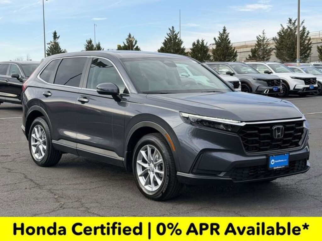 CARFAX One-Owner. Clean CARFAX. Certified. Meteorite Gray Metallic 2026 Honda CR-V EX ***ONE OWNER***, ***LOW MILES***, ***DEALER MAINTAINED***, ***EXCELLENT CONDITION***, ***HONDA CERTIFIED***, ***ALL WHEEL DRIVE***, ***ADAPTIVE CRUISE CONTROL***, ***ALLOY WHEELS***, ***BACK UP CAMERA***, ***BLIND SIDE MONITORING***, ***FORWARD COLLISION ALERT***, ***LANE DEPARTURE WARNING***, ***HEATED SEATS***, ***POWER MOONROOF***, ***POWER SEAT***, ***REMOTE START***, HondaTrue Certified Certified, AWD, 4-Wheel Disc Brakes, 6 Speakers, ABS brakes, Adaptive Cruise Control: Adaptive Cruise Control (ACC) with Low-Speed Follow, Air Conditioning, Alloy wheels, AM/FM radio, Apple CarPlay/Android Auto, Auto High-beam Headlights, Automatic temperature control, Blind Spot Information (BSI) System warning, Brake assist, Bumpers: body-color, Cloth Seat Trim, Compass, Delay-off headlights, Driver door bin, Driver vanity mirror, Dual front impact airbags, Dual front side impact airbags, Electronic Stability Control, Exterior Parking Camera Rear, Four wheel independent suspension, Front anti-roll bar, Front Bucket Seats, Front Center Armrest, Front dual zone A/C, Front reading lights, Fully automatic headlights, Heated door mirrors, Heated Front Bucket Seats, Heated front seats, Illuminated entry, Knee airbag, Low tire pressure warning, Occupant sensing airbag, Outside temperature display, Overhead airbag, Overhead console, Panic alarm, Passenger door bin, Passenger vanity mirror, Power door mirrors, Power driver seat, Power moonroof, Power steering, Power windows, Radio data system, Radio: 240-Watt AM/FM Audio System, Rear anti-roll bar, Rear reading lights, Rear seat center armrest, Rear side impact airbag, Rear window defroster, Rear window wiper, Remote keyless entry, Security system, Speed control, Speed-sensing steering, Speed-Sensitive Wipers, Split folding rear seat, Spoiler, Steering wheel mounted audio controls, Tachometer, Telescoping steering wheel, Tilt steering wheel, Traction control, Trip computer, Turn signal indicator mirrors, Variably intermittent wipers, Wheels: 18 Sparkle Silver, AWD.Here is another hand selected pre owned vehicle from Joyce Koons Honda Buick GMC. 27/31 City/Highway MPGHondaTrue Certified Details:* Limited Warranty: 24 Month/100,000 Mile (whichever comes first) after new car warranty expires or from certified purchase date* Warranty Deductible: $0* Vehicle History* Transferable Warranty* Roadside Assistance* Powertrain Limited Warranty: 84 Month/100,000 Mile (whichever comes first) from original in-service date* Vehicles purchased within New Vehicle Limited Warranty period: extends New Vehicle Limited Warranty to 5 years*/60,000 miles*. Honda Care Roadside Assistance for 2 year/100,000 miles (whichever occurs first). Up to two complimentary oil changes within the first year of ownership. SiriusXM 90-Day Trial.* 182 Point Inspection