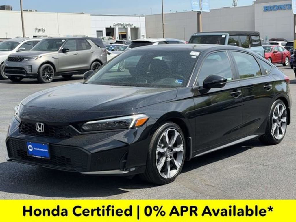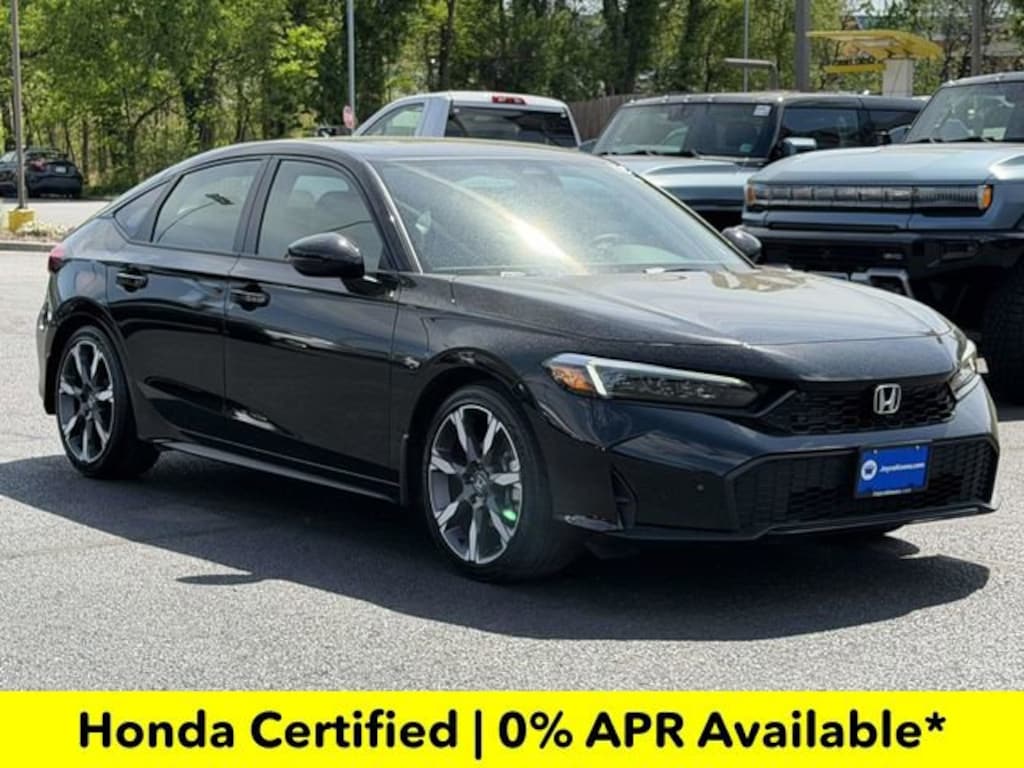 Clean CARFAX. Certified. Crystal Black Pearl 2026 Honda Civic Hybrid Sport Touring ***ONE OWNER***, ***LOW MILES***, ***DEALER MAINTAINED***, ***EXCELLENT CONDITION***, ***LOADED***, ***HONDA CERTIFIED***, ***ADAPTIVE CRUISE CONTROL***, ***ALLOY WHEELS***, ***BACK UP CAMERA***, ***BLIND SIDE MONITORING***, ***FORWARD COLLISION ALERT***, ***LANE DEPARTURE WARNING***, ***HEATED SEATS***, ***LEATHER***, ***BOSE SOUND***, ***NAVIGATION***, ***POWER MOONROOF***, ***POWER SEATS***, ***REMOTE START***, HondaTrue Certified Certified, 2.0L I4 DOHC 16V, 12 Speakers, 4-Wheel Disc Brakes, ABS brakes, Adaptive Cruise Control: Adaptive Cruise Control (ACC) with Low-Speed Follow, Air Conditioning, Alloy wheels, AM/FM radio, Apple CarPlay/Android Auto, Auto High-beam Headlights, Auto-dimming Rear-View mirror, Automatic temperature control, Blind Spot Information (BSI) System warning, Bose Premium Sound System, Brake assist, Bumpers: body-color, Compass, Delay-off headlights, Driver door bin, Driver vanity mirror, Dual front impact airbags, Dual front side impact airbags, Electronic Stability Control, Emergency communication system: HondaLink, Exterior Parking Camera Rear, Four wheel independent suspension, Front anti-roll bar, Front Bucket Seats, Front Center Armrest, Front dual zone A/C, Front reading lights, Fully automatic headlights, Heated door mirrors, Heated Front Bucket Seats, Heated front seats, Illuminated entry, Knee airbag, Lane departure: Lane Keeping Assist System (LKAS) active, Leather Shift Knob, Leather steering wheel, Leather-Trimmed Seat Trim, Low tire pressure warning, Navigation system: Google Maps, Occupant sensing airbag, Outside temperature display, Overhead airbag, Overhead console, Panic alarm, Passenger door bin, Passenger vanity mirror, Power door mirrors, Power driver seat, Power moonroof, Power passenger seat, Power steering, Power windows, Radio data system, Rain sensing wipers, Rear anti-roll bar, Rear seat center armrest, Rear side impact airbag, Rear window defroster, Rear window wiper, Remote keyless entry, Security system, Speed control, Speed-sensing steering, Split folding rear seat, Steering wheel mounted audio controls, Tachometer, Telescoping steering wheel, Tilt steering wheel, Traction control, Trip computer, Turn signal indicator mirrors, Variably intermittent wipers, Wheels: 18 Alloy with Matte Shark Gray Inserts, 2.0L I4 DOHC 16V.Here is another hand selected pre owned vehicle from Joyce Koons Honda Buick GMC. Recent Arrival! 50/45 City/Highway MPGHondaTrue Certified Details:* Vehicle History* Roadside Assistance* 182 Point Inspection* Vehicles purchased within New Vehicle Limited Warranty period: extends New Vehicle Limited Warranty to 5 years*/60,000 miles*. Honda Care Roadside Assistance for 2 year/100,000 miles (whichever occurs first). Up to two complimentary oil changes within the first year of ownership. SiriusXM 90-Day Trial.* Transferable Warranty* Powertrain Limited Warranty: 84 Month/100,000 Mile (whichever comes first) from original in-service date* Warranty Deductible: $0* Limited Warranty: 24 Month/100,000 Mile (whichever comes first) after new car warranty expires or from certified purchase date