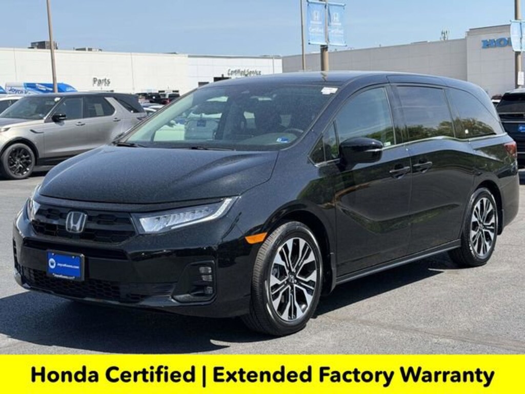 Clean CARFAX. Certified. Crystal Black Pearl 2026 Honda Odyssey Elite ***ONE OWNER***, ***LOW MILES***, ***DEALER MAINTAINED***, ***EXCELLENT CONDITION***, ***LOADED***, ***HONDA CERTIFIED***, ***3RD ROW SEATS***, ***ADAPTIVE CRUISE CONTROL***, ***ALLOY WHEELS***, ***BACK UP CAMERA***, ***COOLED SEATS***, ***DUAL POWER SLIDING DOORS***, ***BLIND SIDE MONITORING***, ***FORWARD COLLISION ALERT***, ***LANE DEPARTURE WARNING***, ***HEATED SEATS***, ***HEATED STEERING WHEEL***, ***LEATHER***, ***SIRIUS XM RADIO***, ***NAVIGATION***, ***POWER LIFTGATE***, ***POWER MOONROOF***, ***POWER SEATS***, ***REAR ENTERTAINMENT***, ***REMOTE START***, HondaTrue Certified Certified, 11 Speakers, 3rd row seats: split-bench, 4-Wheel Disc Brakes, ABS brakes, Adaptive Cruise Control: Adaptive Cruise Control (ACC) with Low-Speed Follow, Air Conditioning, Alloy wheels, AM/FM radio: SiriusXM, Anti-whiplash front head restraints, Apple CarPlay/Android Auto, Auto High-beam Headlights, Auto-dimming door mirrors, Auto-dimming Rear-View mirror, Automatic temperature control, Blind Spot Information (BSI) System warning, Brake assist, Bumpers: body-color, Compass, Delay-off headlights, Driver door bin, Driver vanity mirror, Driver's Seat Mounted Armrest, Dual front impact airbags, Dual front side impact airbags, Electronic Stability Control, Emergency communication system: HondaLink, Exterior Parking Camera Rear, Four wheel independent suspension, Front anti-roll bar, Front Bucket Seats, Front dual zone A/C, Front fog lights, Front reading lights, Fully automatic headlights, Garage door transmitter: HomeLink, Heated and Ventilated Front Bucket Seats, Heated door mirrors, Heated front seats, Heated steering wheel, Illuminated entry, Knee airbag, Lane departure: Lane Keeping Assist System (LKAS) active, Leather steering wheel, Low tire pressure warning, Memory seat, Navigation system: Honda Satellite-Linked Navigation System, Occupant sensing airbag, Outside temperature display, Overhead airbag, Overhead console, Panic alarm, Passenger door bin, Passenger seat mounted armrest, Passenger vanity mirror, Perforated Leather-Trimmed Seats with Piping, Power door mirrors, Power driver seat, Power Liftgate, Power moonroof, Power passenger seat, Power steering, Power windows, Radio data system, Radio: 500-Watt AM/FM/HD Premium Audio System, Rain sensing wipers, Rear air conditioning, Rear anti-roll bar, Rear audio controls, Rear reading lights, Rear seat center armrest, Rear window defroster, Rear window wiper, Reclining 3rd row seat, Remote keyless entry, Security system, Speed control, Speed-sensing steering, Speed-Sensitive Wipers, Split folding rear seat, Spoiler, Steering wheel mounted audio controls, Tachometer, Telescoping steering wheel, Tilt steering wheel, Traction control, Trip computer, Turn signal indicator mirrors, Variably intermittent wipers, Ventilated front seats, Wheels: 19 Machine-Finished Alloy.