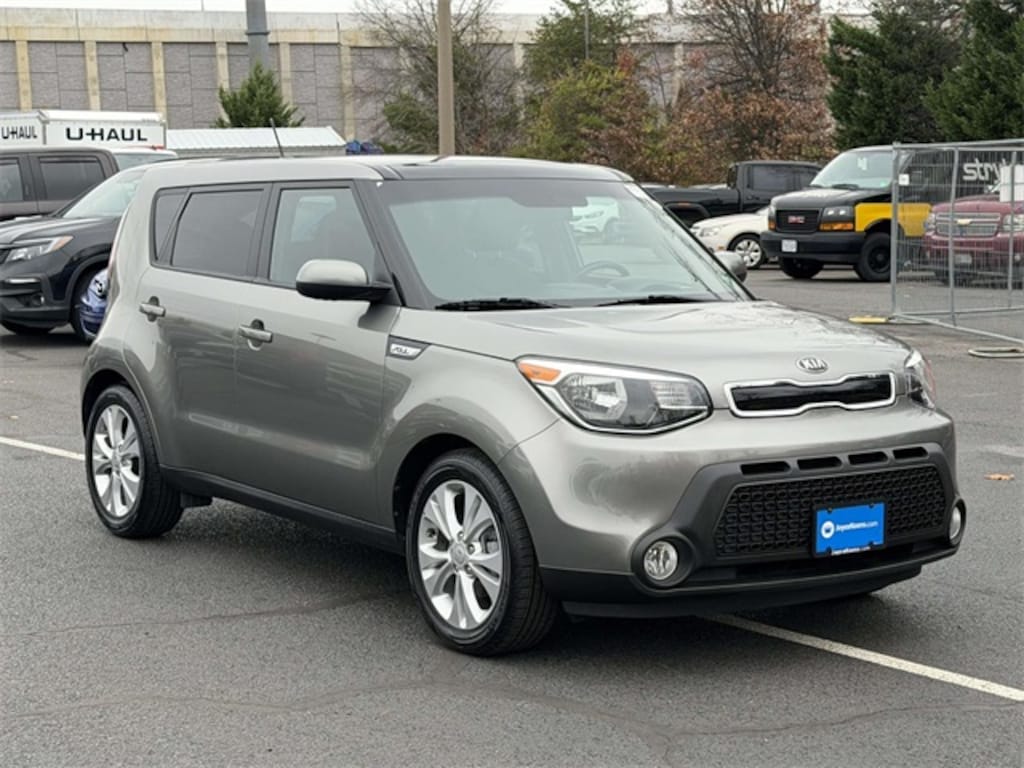CARFAX One-Owner. Clean CARFAX. Titanium Gray 2015 Kia Soul Plus ***ONE OWNER***, ***LOW MILES***, ***LOCAL TRADE***, ***DEALER MAINTAINED***, ***EXCELLENT CONDITION***, ***LOADED***, ***ALLOY WHEELS***, ***BACK UP CAMERA***, ***COOLED SEATS***, ***HEATED SEATS***, ***HEATED STEERING WHEEL***, ***LEATHER***, ***SIRIUS XM RADIO***, ***NAVIGATION***, ***POWER MOONROOF***, 10-Way Power Adjustable Driver's Seat, Audio Package, Automatic Temperature Control, Engine Immobilizer, Front Fog Lights, Heated & Ventilated Front Seats, Heated Outboard Rear Seats, Heated Steering Wheel, Leather Seat Trim, Leather-Wrapped Steering Wheel & Gear Shift Knob, Leatherette Instrument Hood/Door Center/Armrests, Panoramic Sunroof w/Power Sunshade, Piano Black Interior Accents, Primo Package, Push Button Start, Satin Chrome Interior Door Handles, 17" x 6.5J Alloy Wheels, 4-Wheel Disc Brakes, 6 Speakers, 6-Way Adjustable Driver's Seat, ABS brakes, Air Conditioning, Alloy wheels, AM/FM radio: SiriusXM, Auto On/Off Headlights, Brake assist, Bumpers: body-color, Cargo Net, Carpeted Floor Mats, Driver door bin, Driver vanity mirror, Dual front impact airbags, Dual front side impact airbags, Electronic Stability Control, Front anti-roll bar, Front Bucket Seats, Front Center Armrest, Front reading lights, Front wheel independent suspension, Heated door mirrors, Illuminated entry, Low tire pressure warning, Occupant sensing airbag, Outside temperature display, Overhead airbag, Overhead console, Panic alarm, Passenger door bin, Passenger vanity mirror, Power door mirrors, Power steering, Power windows, Radio: AM/FM/MP3 Audio System, Rear window defroster, Rear window wiper, Rear-Camera Display, Remote keyless entry, Speed control, Speed-sensing steering, Split folding rear seat, Steering wheel mounted audio controls, Tachometer, Telescoping steering wheel, Tilt steering wheel, Traction control, Trip computer, Upgraded Cloth Seat Trim, UVO w/Auto-On/Off Headlights, UVO w/eServices Package, Variably intermittent wipers, Wheel Locks, 10-Way Power Adjustable Driver's Seat, Audio Package, Automatic Temperature Control, Engine Immobilizer, Front Fog Lights, Heated & Ventilated Front Seats, Heated Outboard Rear Seats, Heated Steering Wheel, Leather Seat Trim, Leather-Wrapped Steering Wheel & Gear Shift Knob, Leatherette Instrument Hood/Door Center/Armrests, Panoramic Sunroof w/Power Sunshade, Piano Black Interior Accents, Primo Package, Push Button Start, Satin Chrome Interior Door Handles.