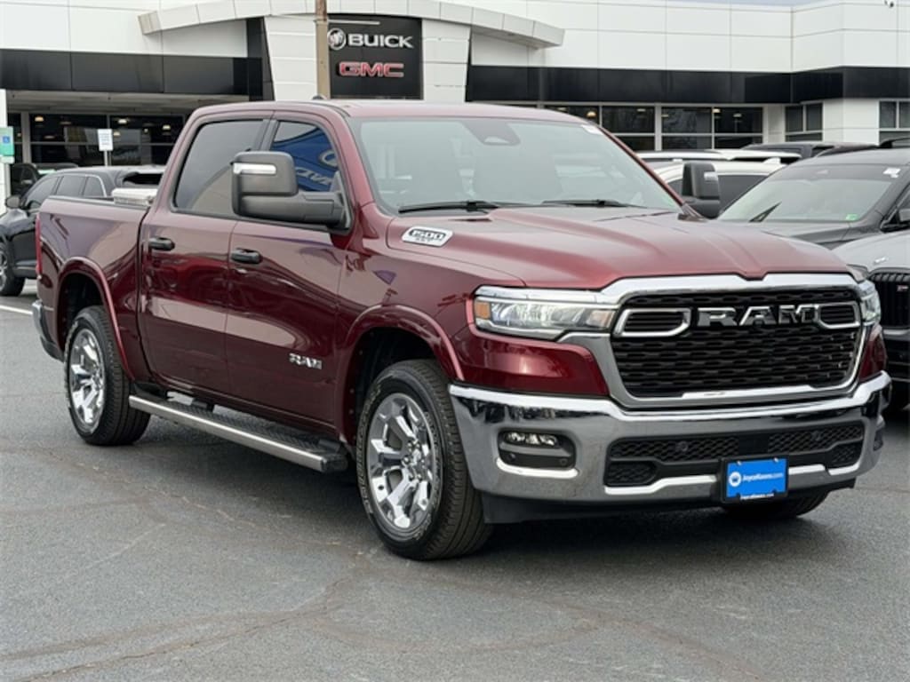 CARFAX One-Owner. Clean CARFAX. Delmonico Red Pearlcoat 2025 Ram 1500 Big Horn/Lone Star ***ONE OWNER***, ***LOCAL TRADE***, ***DEALER MAINTAINED***, ***EXCELLENT CONDITION***, ***4 WHEEL DRIVE***, ***ADAPTIVE CRUISE CONTROL***, ***ALLOY WHEELS***, ***BACK UP CAMERA***, ***BLIND SIDE MONITORING***, ***FORWARD COLLISION ALERT***, ***LANE DEPARTURE WARNING***, ***HEATED SEATS***, ***HEATED STEERING WHEEL***, ***SIRIUS XM RADIO***, ***NAVIGATION***, ***POWER MOONROOF***, ***POWER SEAT***, ***TOW PACKAGE***, Apple CarPlay/Android Auto, 115V Auxiliary Power Outlet, 115V Auxiliary Rear Power Outlet, 12" Touchscreen Display, 2nd Row In Floor Storage Bins, 3 Rear Seat Head Restraints, 33 Gallon Fuel Tank, 4 Way Front Headrests, 4-Wheel Disc Brakes, 400W Inverter, 4G LTE Wi-Fi Hot Spot, 6 Speakers, 9 Amplified Speakers w/Subwoofer, ABS brakes, Accent Color Tailgate Handle, Air Conditioning, Air Conditioning ATC w/Dual Zone Control, AM/FM radio, Apple CarPlay, Auto High-beam Headlights, Auto Power-Folding Mirrors, Auto-Dimming Exterior Driver Mirror, Auto-Dimming Rear-View Mirror, Big Horn Level 2 Equipment Group, Black Exterior Mirrors, Black Premium Power Mirrors, Black Trailer Tow Power Mirrors, Brake assist, Bumpers: chrome, Cloth Bench Seat, Cluster 7.0" TFT Color Display, Compass, Configurable Drive Mode, Connected Travel & Traffic Services, Connectivity - US/Canada, Convex Wide-Angle Exterior Mirror Insert, Delay-off headlights, Dome Dual LED Reading Lamp, Dual front impact airbags, Dual front side impact airbags, Dual-Pane Panoramic Sunroof, Electronic Stability Control, Exterior Mirrors Courtesy Lamps, Exterior Mirrors w/Heating Element, Exterior Mirrors w/Supplemental Signals, Front anti-roll bar, Front fog lights, Front License Plate Bracket, Front wheel independent suspension, Fully automatic headlights, Glove Box Lamp, Google Android Auto, GPS Antenna Input, GPS Navigation, HD Radio, Heated door mirrors, Heated Front Seats, Heated Steering Wheel, Illuminated entry, Integrated Voice Command w/Bluetooth, Leather Wrapped Steering Wheel, LED Dome Lamp w/On/Off Switch, LED Footwell Lighting, Low tire pressure warning, Manual Adjust 4-Way Front Passenger Seat, Manual Folding Exterior Mirrors, Manual Telescoping Mirrors, Media Hub w/2 Charge Only USBs, Mirror Clearance/Running Lights, Occupant sensing airbag, Outside temperature display, Overhead airbag, Overhead console, Overhead LED Lamps, Panic alarm, ParkView Rear Back-Up Camera, Passenger vanity mirror, Power 2-Way Driver Lumbar Adjust, Power Adjust 8-Way Driver Seat, Power Adjustable Pedals, Power door mirrors, Power steering, Power windows, Power-Adjustable Convex Aux Mirrors, Premium Overhead Console, Quick Order Package 21Z Big Horn, Radio data system, Radio: Uconnect 5 Nav w/12.0" Display, Radio: Uconnect 5 W w/8.4" Display, RAM Grille Badge - Chrome, Rear 60/40 Folding Seat, Rear anti-roll bar, Rear Power Sliding Window, Rear step bumper, Rear Window Defroster, Remote keyless entry, Remote Tailgate Release, Security Alarm, SiriusXM w/360L, Speed control, Split folding rear seat, Steering Wheel Mounted Audio Controls, Sun Visors w/Illuminated Vanity Mirrors, Supplier Part Tracking (J-1), Tachometer, Telescoping steering wheel, Tilt steering wheel, Traction control, Trailer Brake Control, Trailer Reverse Steering Control, Trailer Tire Pressure Monitoring System, Trailer Tow Group, Trailer Tow Mirrors, Trip computer, Universal Garage Door Opener, USB Host Flip, Variably intermittent wipers, Voltmeter, Wheels: 20" x 9" Aluminum Chrome Clad (WRK), Apple CarPlay/Android Auto.